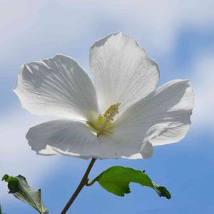 【研究学園の花々】2020年8月1日、研究学園駅前の歩道に、フヨウが天に向かって咲いていました!