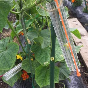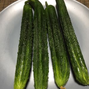 ①黒サンゴキュウリを今朝 雨の合間に収穫してました。 例の型はめキュウリです。