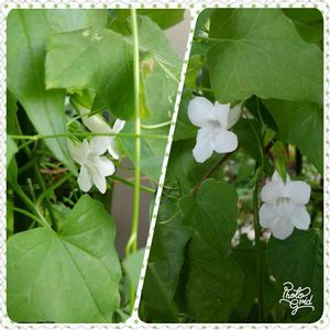 今朝の白い花 1枚目 グリーンカーテンにした、サントリーの大輪のクライミングサンパラソルジャイアントの白花。 去年の苗を地植えのまま、冬越しさせたんですが、伸びずに下の方で咲いてます。 株下には、斑入りトレニアコンカラーブルーインパルスが繁茂してます。 2枚目 pwのスーパーベナアイストィンクルは、藤紫色の花が咲くんですが、こちらは白花。 3枚目 朝顔江戸風情。 本来は、紫の筋入りの模様なんですが、白っぽいのも素敵💓 4枚目 サントリーのサンクエールの白花。 ブルーとピンクと白と三種類あったのが、数年前にコガネムシの幼虫にやられ、ピンクと白が残りました。 5枚目 アサリナの白花 アサリナは、紫とピンクと白花が咲いてます。 この白花は、アサリナ雪すだれという名称のようです。 🏷️ 白い水曜日