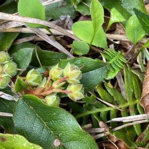 イワナシ(岩梨) ツツジ科イワナシ属 常緑小低木 イワナシの実。 2cmほどの小さな実だが、この姿がヤマナシなどのナシの実に似ているわけではなく、中にある果肉が白く、梨のような食感で、まさに梨の味がするのだそうです。 7月6日 場所:焼岳