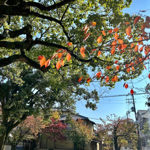 噴水公園⛲️にて 桜のオレンジ色の葉っぱ🍁と秋晴れの空☀️