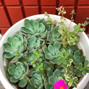 前に投稿した、寄せ植えでスカスカだった多肉さんが、(自然に)ぎゅうぎゅうになり偶然に可愛くなりました💕☺️マジカルキューティーのピンクのお花が映える💕
