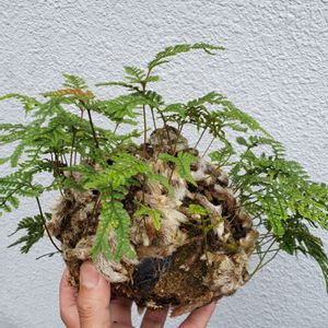 姫石化トキワシノブボール 葉先が二股✌に分かれてるのが姫石化トキワシノブ 分かれてないのがオッサン?? 鉢植えにしてたんやけど抜けて鉢の上で分離したまま育ってたみたい💧 勝手にシダ愛好会タグ付けさせてもらいます🙋