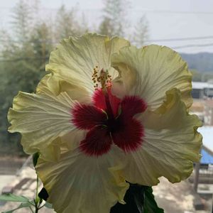 『ハイビスカス(白)🌺』 朝、見たら、咲いてだよ‼️二色だ!初めて見たよ‼️他の蕾も二色に咲くのかなぁ??とても、綺麗です❣️