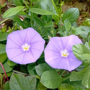 おはようございます。 💜色のコンボルブルスさんが、咲きました。😊 つる性植物なので、どんどん伸びます。💦 今の場所は、狭いので、移動します。🤭 スプリットペダルさん、今年は、沢山咲いてくれそうです。🥰 昨日は、豪雨、今日は、風🍃が強いです。( ´•ᴗ•ก)🐱🐾