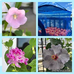 ハイビスカスロバツスちゃんが咲き始めました💓😃 梅も干し始めました👍😃 スプリットペダルちゃんやハイビスカスケイトさんも何輪も咲いてくれています☺️👍💓