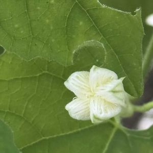 畑より スプリットペダルが綺麗に撮れました 花も綺麗🌸😍 ②あじさい 十二単 畑の紫陽花 一枝咲いています ③風船カズラ すごい繁殖力 風船たくさんできます🎈🎈🎈 ④白ゴーヤ 8センチに ぶつぶつ模様が美しい ⑤コキア 溢れ種から丸く育っています たくさんあったので他に移したけど移した所はイマイチ育ち悪い 小さな何かが通りそう ここをトトロの道と勝手に名づけちゃった 笑 フフ♪😁