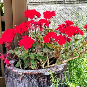 赤い❤️ゼラニウム 通り道のご近所さん宅の格子戸横に 出勤途中で