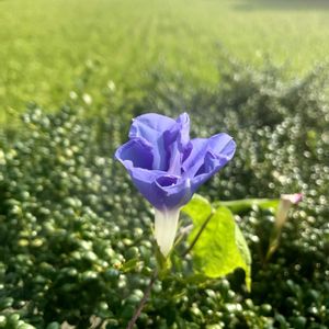 朝顔 柘植の木の上に咲き出しました 出勤途中で