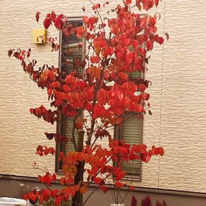 ハナミズキ 通り道の個人病院🏥の樹木🌳 紅葉して綺麗でした 朝陽が昇って陽が射すので余計に綺麗でした。 夕方仕事帰りにはこんな色はしていません。 出勤途中で
