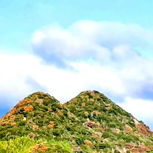 今朝の兄弟山⛰️ スーパーの上から顔出しています 出勤途中で 🚌の待ち時間に🤳