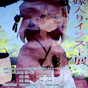 出勤途中で、 山口駅で、☕️飲むベンチの前の掲示板に、狐の嫁入りイラスト展の、ポスターが貼られていました。 下松市であるらしいです。