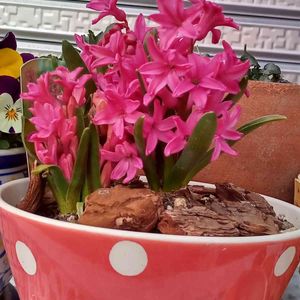 昨日、出勤途中で、 通り道のお宅の、玄関先のテーブルに、 可愛いヒヤシンスが、置かれていました。