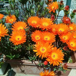 出勤途中で、ご近所のプランターに植えられている、オレンジのマツバギクを、撮りました。お天気悪いと、お花が開かないので、今日は見れません。