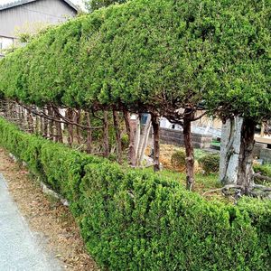 出勤途中で、通り道のお宅の生け垣に、窓が作られ見通しよく成っていました。 先日迄は、窓がありませんでした。
