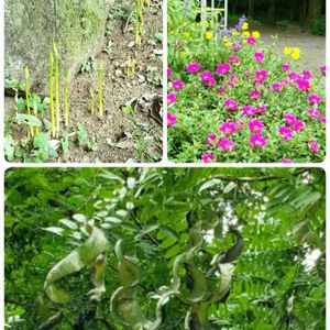 「群馬の森」No.1😄 ↖️アスパラガスではありません。 彼岸花の蕾です。😆 ↗️大きなプランターの寄せ植えです。 ポーチュラカ、他。 ⬇️サイカチって、こういう実がなるんですね。😃 クルンクルン! 頑張れ❗日本‼️ ✊‼️