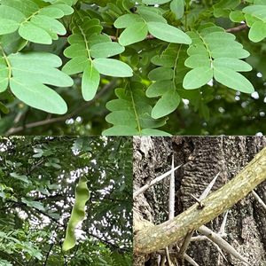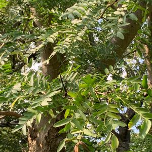 サイカチ (皀莢) 岩国、吉香公園内。 マメ科の木でここまで大きいのは珍しい。 幹の直径は1m近くあります。本来、幹周りに大型のトゲがあるのが特徴ですが、老木なのか、ほとんど見られません。 新緑の葉が美しかったです。(*ˊ꒳ˋ*)*♡ 🏷巨木古木の木曜日