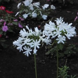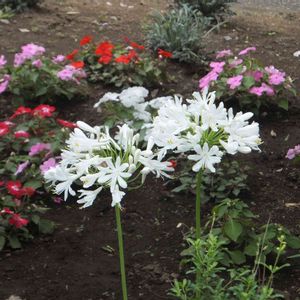日々草に囲まれて。白い花が引き立ちます。 パチリ