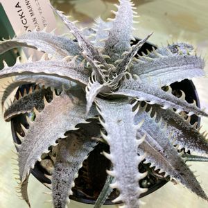 2020年もあと1.5ヶ月弱。 我が家にいる多肉植物たちのリストを計算してみたので、 属やある固まりで紹介していき、 最終的に何体生き残り、何体失敗したのか2020年の締めとして不定期で投稿していくシリーズ。 生死シリーズ2020(でタグ作成) セダム、チレコドン、クラッスラ、カランコエ、センペルビウム、ガステリアに続く第7弾は... ディッキア。 26/26 全員無事。調子悪そうな子もいない!! 2月辺りからずっとベランダで、暖かくなったら雨ざらし&直射日光。強い!! ※葉にトリコームがべったり付いているタイプは軒下です(グランマルニエルなど)。 乾燥気味に育てる、水が好きとか色々な情報を仕入れては試行錯誤で育てたディッキア。 写真は、エステべシー、グランマルニエル、マルニエルラポストレイ×エステべシー、グランマルニエル スノウ、縞剣山錦。 葉がキレイだったり、ギザギザの荒々しさだったり、葉に魅力がたっぷり詰まっているディッキア。 寒さ暑さに強い情報があり、寒さに関しては霜に当たらなければ3~5℃なら耐えられるらしい。今は雨ざらし位置だけど、場所が空いたら、軒下に移動して様子を見ながらギリギリまでベランダかな。 ✂︎---------我が家のディッキア-----------✂︎ ・sp ハイブリッド ・(アリゾナ×マルニエルラポストレイ)×ボーン ・アリゾナ ・ニッケルシルバー ・縞剣山錦 ・(ケリー×マセドイ)×ヘブディング ビッグブルーF1 ・ターザン(ターザナ) ・ゴエリンギー ・エステベシー ・グランマルニエル スノウ ・ダウソニー ・コリスタミネア パープルフォーム ・マイケルアンドレス(ブリットルスターF3) ・ゴエリンギー レッドクローン×ターザン ・ターザン(ターザナ)② ・レッドボーン×スカイウォーカー ・グランマルニエル ・トゥーシ―F2(シルバークローン) ・グレイオプス ・タイニーレッド×ヘブンアンドヘル ・マルニエルラポストレイ×エステベシー ・(レッドシャーク×ディストーション)×ジョーズ ・ブラックアイス ・ダウソニー×ガーネットクロウ ・デリカータ ・(ソウフィッシュ×7a)×ターザン