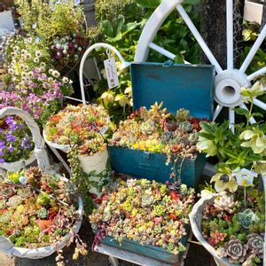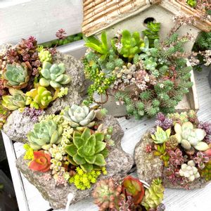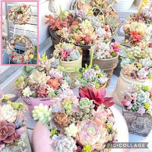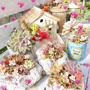 GW突入なのかな⁉️ 毎日同じような生活なので 曜日感覚も無くなってくるーー💦 良い天気が続いて多肉事がはかどるね🍀 寄せ植えの子達を纏めて飾ってみたよ❣️ 纏めると多肉ちゃんの良さが際立つ気がする💖