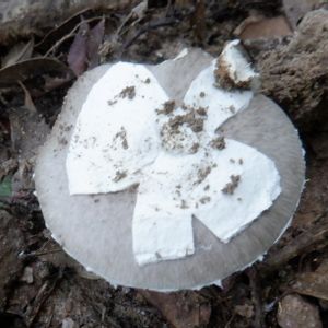 朝活🚶♀️散歩道にて… ハラタケ目テングタケ科 コンテグタケモドキ🍄さん(毒) 傘表面のかすり模様や縁のフリルが特徴の🍄 白色のツバとツボを持つ 色んな形してて面白い😁 割りと好き😳