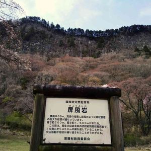奈良 曽爾村 屏風岩公苑 桜は過ぎていましたが、樹々は萌えていました。 柱状節理がみごとな岩が、屏風のようにそびえていました。
