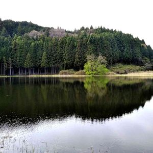 奈良 宇陀市室生 龍王ケ渕 夕暮れ近く、 風で湖面がちりめんになり始めました。 また、湖面が鏡になる時刻を選んで観に行ってみます。