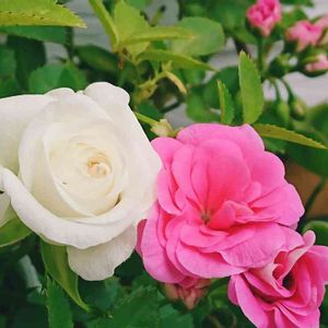 おはようございます👋😃☁ 白いミニ薔薇🌹さんも咲き始めました😍💞💞 ゼラニューム八重さんと、鉢カバーの中で同居していたら寄り添っていました😍 👩「私はくっつけてないですよ😊」 コロナの影響で来年は出生率が下がり、更に子供の人口が減るような気がします😖 今日もコロナに出会わない、 素敵な1日をお過ごし下さいね🙏