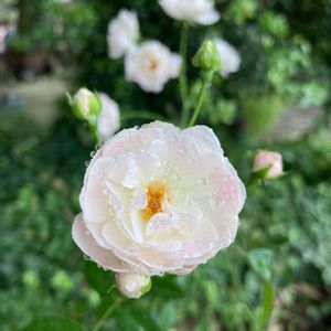 時々、強風とポツリと雨が降ってます🌦 そんな中、真っ白なミニ薔薇さんの美しい姿🤍 蕾もたくさん🤭✨ 🏷平和を願う🕊