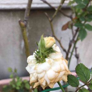 おはようございます。🤗 突然変異でしょうかねぇ❓ ミニバラの花の中から次の芽が‼️😱