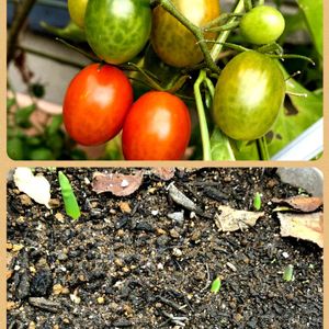 こんにちは😃☘️ 頑張っているミニトマトさん🍅と 気の早いチューリップさん🌷です😅 暑かったり寒かったり😅 身体が保ちましぇん( ̄ー ̄) 皆様、ご自愛ください☆彡(⌒▽⌒)