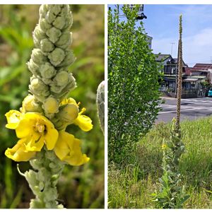 ビロウドモウズイカ 天鵞絨毛蕊花 別名ニワタバコ(庭煙草) 気になる野草です 咋夏てっぺんまで咲いて、冬の間ずっと遊歩道で枯れた姿をさらしていたのですが… なんとそこからまた咲き始めました。 強い生命力を感じます。 これからも何年も咲き続けるのかなぁ? NHKの「ダーウィンが来た」で、クラゲが死んでも、そこから同じDNAの子供たちが次々出てくるのを見ましたが、同じ神秘を見た感じです👀