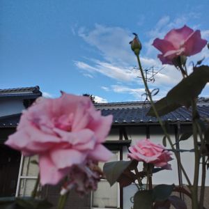文月30日 夕方 青空 バラ 我が家 💕いいもんだ✌️