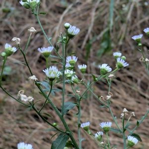 水辺のある紫公園で ①ヒメムカシヨモギ? キク科 ムカシヨモギ属 ヒメジオン等より一回り小さい。そこら中に咲いていました。 ご意見頂き、ヘラバヒメジョオンと分かりました。キク科 ムカシヨモギ属 ②ヤブガラシ ブドウ科 ヤブガラシ属 厄介な植物というイメージだが、根茎や根には腫れ物等に薬効があるという。 葉の裏に毛が生えていればアマチャヅルと聞き、裏返してみるけど… ③アレチギシギシ? タデ科 ギシギシ属 花は間隔を置いて輪生状に付く。