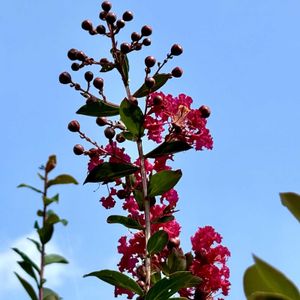 ①強剪定したサルスベリさん ようやくお花が咲き出しました ②ヤブガラシさんの方が成長が早くて、先の方まで絡んでますね➰ ③黄色いシベは虫さんの擬似餌で周りの長いのが雄蕊と雌蕊だとか ④⑤草むらの中にハナトラノオさん見つけて草を掻き分けたら、ホウジャクさんが来てました♡