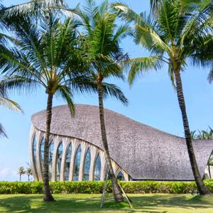 バリ島ホテル滞在の時の1枚 プライベートビーチに 鎮座するクジラ🐳 チャペルなのよ~ 内装も柱も竹で素敵🐋 見惚れました
