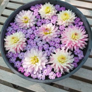 いつものフローティングフラワ今回は大きなダリアとスミレ