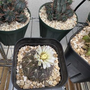 熱中症警戒アラートが各地で出ている今日この頃…🥵 そんな中、「棘無し短毛丸」が白くて美しいお花を咲かせてくれました‼︎ 2022年に一度モフモフの花芽を出してくれたのですが途中で萎えて残念でしたが…3年越しに。 冬は外の軒下に、春からは日向に出して雨ざらしにとスパルタ管理でしたが、やはり春先の少量のマグアンプが効いたのでしょうか。 元気にお花を咲かせてくれてありがとう❣️