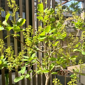 2年前に地植えしたスモークツリーこんなに大きくなりました。昨年剪定失敗したようで、花芽のフワフワ一つしかありません😭来年に期待🏵️