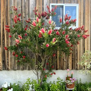 ブラシの木とスモークツリー。今年はスモークツリーの花が見られそうです。去年は花芽のまま枯れてしまいました。