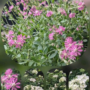 皆様いかがお過ごしでしょうか?🌞🍃 ①庭で咲いているお花さん 達です ②シンビジューム 花友さんのお宅のきれい な蘭🌸によく似て いました うちのは 花弁が細い様な… 30年前からなので 原種に近いのかもと 思いました😅 ③フランネル 満開できれいでした😆 ④スモークツリーの花 ⑤エリゲロン 源平小菊 咲きはじめで色がついて ませんね🎶