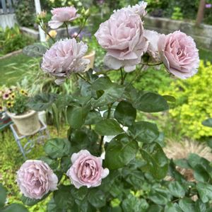 おはようございます😄 昨日は良い天気で、植物も元気いっぱいでした! ①ミッドナイトブルー ②エスプリドゥパリ ③レディオブシャーロット ④ラヴァルスディアベイル ⑤スモークツリー