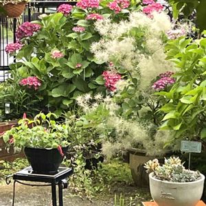 おはようございます☔️ 大雨警報発令しました。 川が心配でライブカメラチェックしています。 🍀アジサイ スモークツリー スモークツリーさん重たそうです。 雨前にカットすべきでした。😅 雨の被害が出ませんように🙏