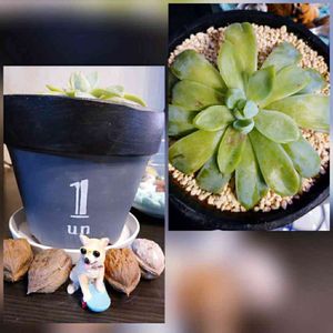 小6の次女が鉢を塗ってくれました😆手前の胡桃は最近撮れたものです。ついでに撮りました📸アンバランス🤣 この多肉さん濡れて危険で湿気が多いので現在扇風機で乾燥中です。 あなたのお名前は??