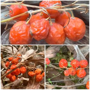里山を歩いてみれば… 色んな色の果実がありました♪ シオデ(牛尾菜)×2 ヨウシュヤマゴボウ(洋種山牛蒡)⚠️ アオツヅラフジ(青葛藤) ノブドウ(野葡萄) ⚫︎⚪︎⚪︎⚪︎⚪︎