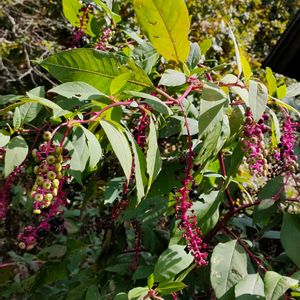 ヨウシュヤマゴボウ (果実) 🌱ヤマゴボウ科 ヤマゴボウ属 暫く見てなかったヨウシュヤマゴボウを久しぶりに見ました! 若い果実や、すでに果実が落ちて果軸、花柄、残ってる萼の赤い姿も見られました🍀