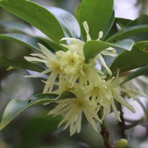 シキミ(樒、梻) 先ずはお花 両性花 雌性先熟 4月の写真 艶々の果実 袋果が集まった集合果 裂開して果実は木質化 それによって種子が弾け出る 木質化した果実がかなり毒が強く、種子の何倍とか 八角と似て誤食されやすいため、果実は植物としては唯一、毒物及び劇物取締法により劇物に指定されている 怖い神経毒ですが、口にしなければ大丈夫 樹皮や葉っぱは抹香や線香に使われます 因みにトウシキミの実(八角)は毒性はなく、インフルエンザ治療薬タミフルの製造原料でもあるそう 毒と薬、なんでこんなに似てるの