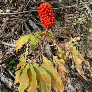 美しき有毒植物🏴☠️ ①マムシグサのツヤツヤの赤い実✨ ②ヤマトリカブトか?葉もなく小さな花のみでした