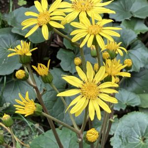 ツワブキ(石蕗) キク科ツワブキ属 咲き始めの花に会えました🌼🌼🌼 蕾の存在感にも圧倒されました 黄色の花を見ると元気になりますね🌼😃🎶