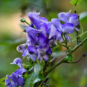 【鳥兜】《キンポウゲ科》 花言葉 「騎士道」「栄光」「人嫌い」「復讐」 古代ローマでは 継母が夫の連れ子を殺害するために用いたことから「継母の毒」とも呼ばれていました。 多くの人間がトリカブトにより毒殺されたため、ローマ皇帝により栽培が禁止されたほどだったそうです。 ギリシャ神話では、 トリカブトは冥界の番犬ケルベロスのよだれから生まれたとされ、 冥界の神ヘカテーを象徴する花でもあります。